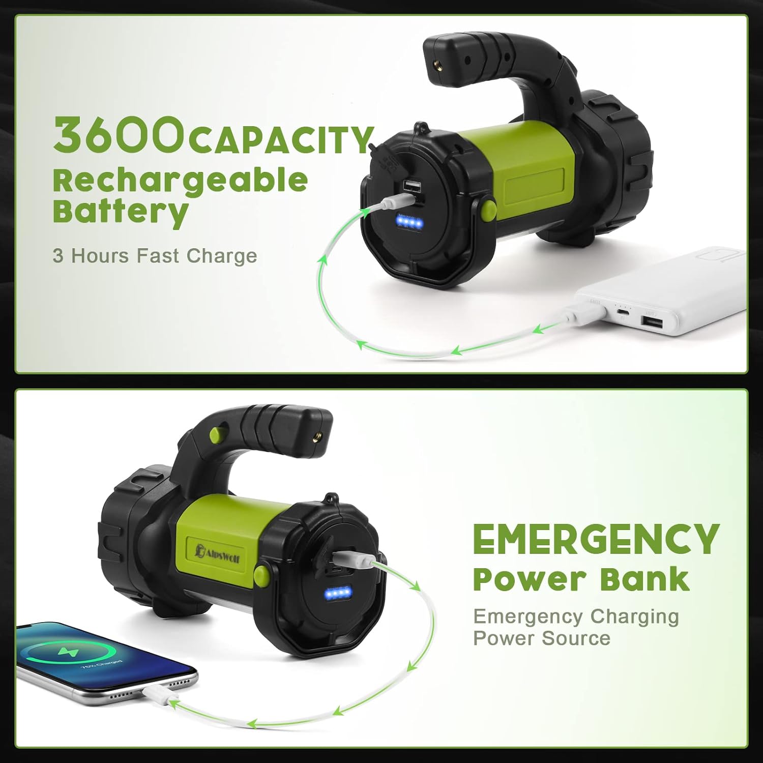Introducing the Camping Lantern Rechargeable by AlpsWolf – your reliable companion for all your outdoor adventures and emergency situations. This versatile LED flashlight spotlight lantern boasts an impressive 800LM output, providing you with a powerful and bright light source whenever you need it.